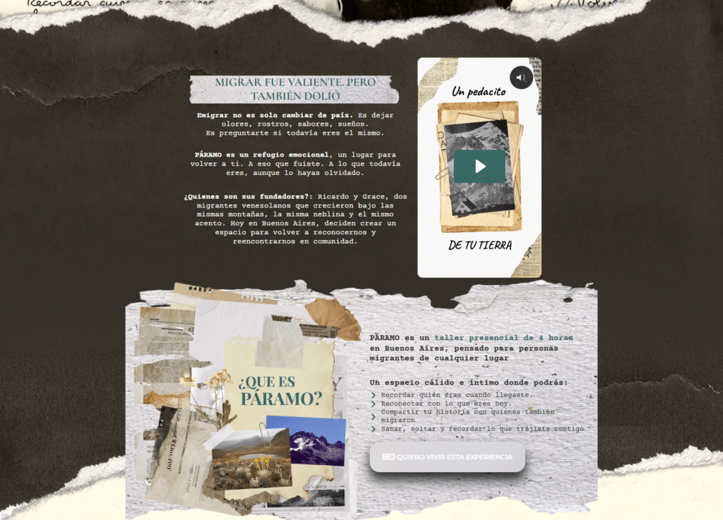 Cuando creamos la web de PÁRAMO, no diseñamos solo una página: construimos un refugio visual. Un espacio digital que traduce en imágenes, colores y narrativa lo que vive un migrante por dentro: nostalgia, fuerza, silencio, memoria, arraigo.